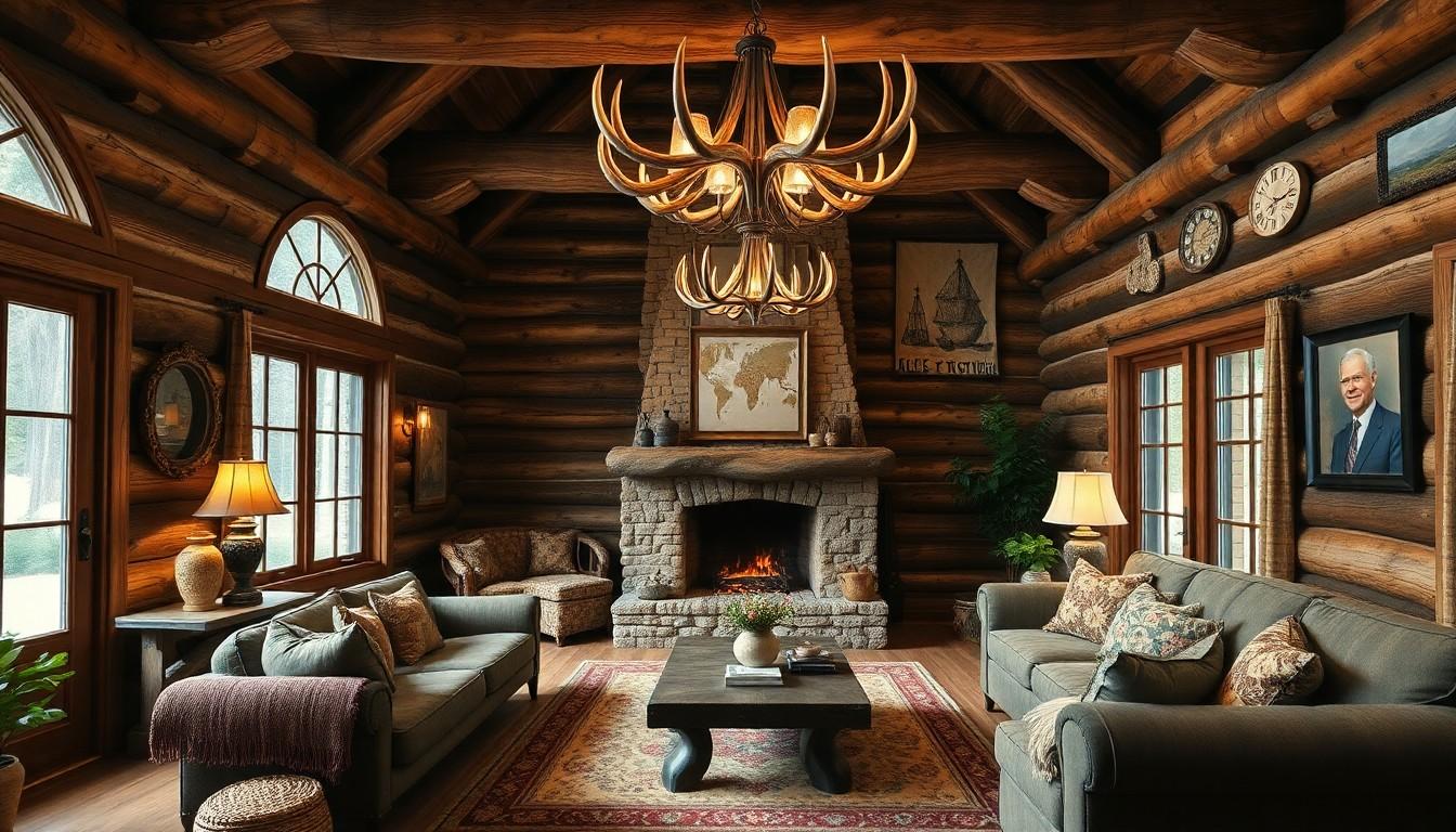 Rustic aesthetics embrace the natural charm of log construction. Textured wood finishes bring warmth, while stone accents add organic beauty. Earthy color palettes, featuring browns, greens, and deep reds, evoke a cozy atmosphere. Handcrafted furniture, often made from reclaimed materials, complements the rustic theme, grounding the design. Accessories like vintage textiles and artisanal crafts connect the space to nature, enhancing its overall appeal. Rustic lighting fixtures made from antlers or wrought iron provide character and warmth, illuminating inviting spaces.